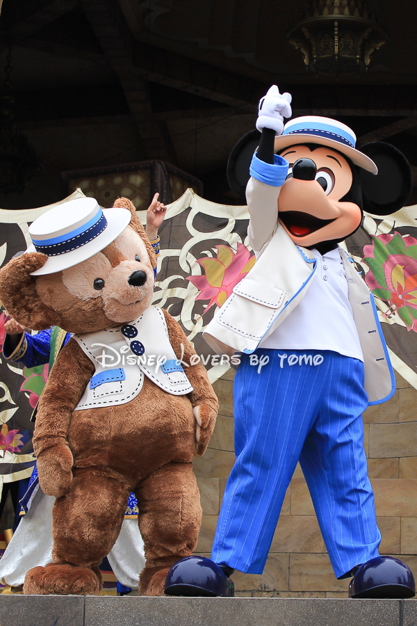 ダッフィー、ミッキーのイケメン決めポーズに挑戦!